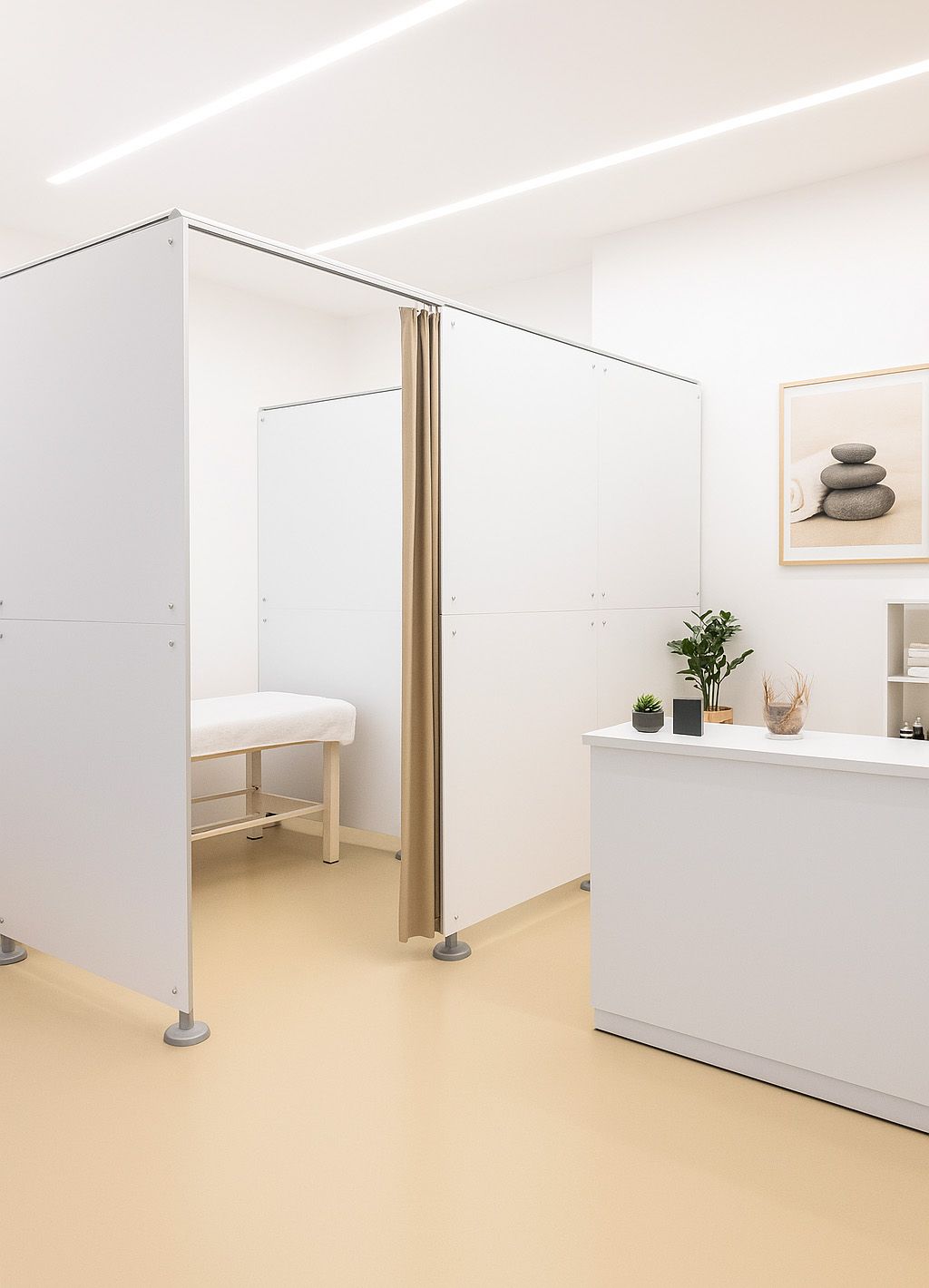 Le pareti modulari per cabine sono versatili e permettono di creare spazi personalizzati all'interno dei centri estetici. La loro flessibilità consente di: