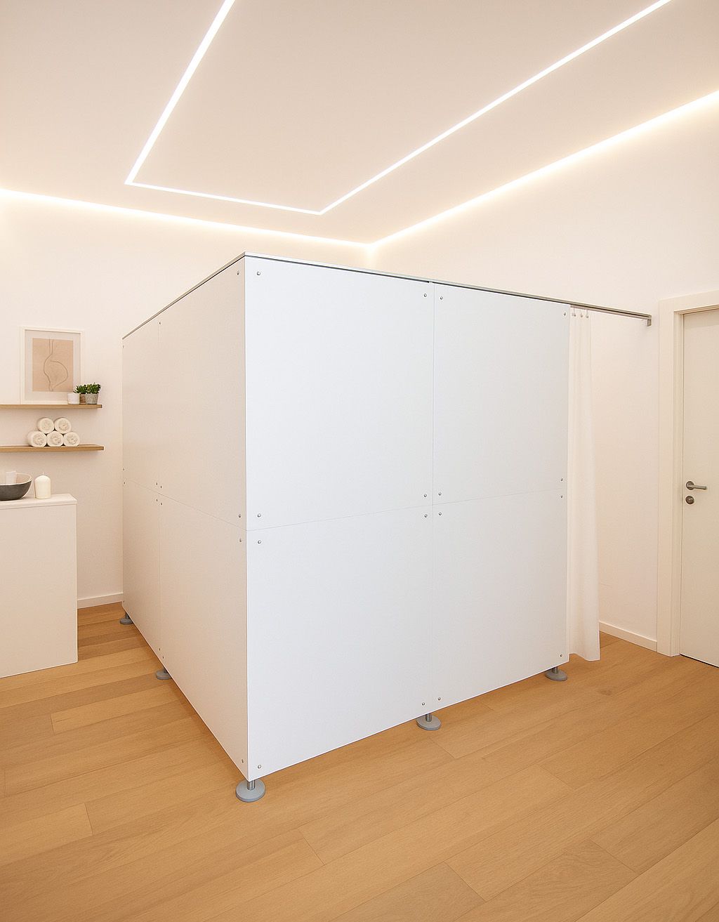 3. Creare molteplici ambienti anche in presenza di una superficie ridotta: grazie agli spessori minimi, le pareti modulari permettono di suddividere ambienti anche piccoli in molteplici cabine destinate ai vari trattamenti.