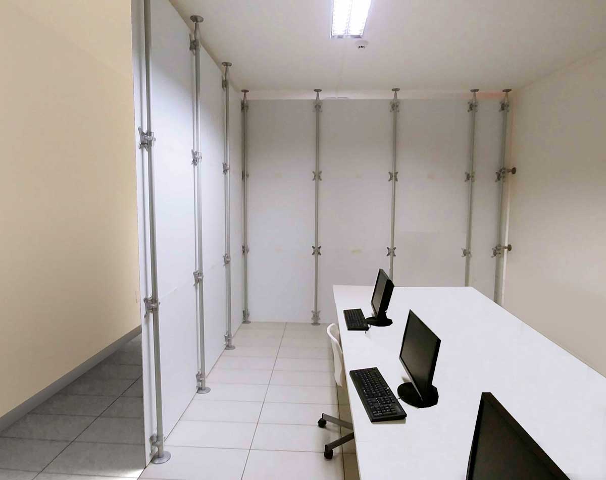 - Créer un entrepôt avec des parois mobiles : les murs sont configurés pour créer un entrepôt pour les remises à outils ou pour le stockage des fournitures. Vestiaires : ils peuvent être équipés de barres et de crochets pour garder les vêtements des clients et des patients en ordre.Créez un coin café avec panneaux mobiles : il est possible de créer un espace café séparé même avec très peu d'espace disponible Hygiène et nettoyage : Les cabines doivent être facilement nettoyées et désinfectées pour garantir un environnement hygiénique et sûr pour chacun. Les surfaces des cabines doivent être lisses et faciles à nettoyer avec des produits de nettoyage appropriés. Éclairage adéquat : les cabines doivent être bien éclairées, afin que le personnel puisse voir clairement les outils ou les vêtements pendant l'installation et l'inspection. Matériaux résistants à la chaleur. Eau : les matériaux utilisés pour construire les cabines. doivent être résistants à l'eau, afin que les surfaces puissent être facilement nettoyées et désinfectées.